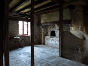 With its new granges (also known as communs when used to support the domestic routine of the house) the chateau must have been largely self-sufficient. Most of the 19th century features are still evident. The western building, which is rather narrower than the other two, contains a bakery with large and small ovens, which was heavily used judging by the blackened timbers and brickwork. This area, in the centre of the building, was impressively renovated by Michel Fraboulet c. 2002 while he lived at the chateau with Mme Clochet. M. Fraboulet also carefully repaired the rest of the ground floor interior of this grange, which also included two large former storage areas; a six-seater earth latrine (since converted into a heating equipment room); and what is said to have been the village lock-up - all to provide extensive gallery space for Mme Clochet’s paintings. M. Fraboulet also renovated the coachhouse and farrier’s forge at the north-western end of the central grange. The rest of this central building consisted of stabling, a tack room, and possibly the coachman’s lodge. Mme Clochet converted the latter area into accommodation for a caretaker in 2006, and it was further modified by the present owners to form a gite for people to stay in.