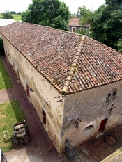 The area between the central and eastern granges was used for access to the park and parts of the farm, and for herding animals. Until very recently there was no barrier on the road side, and the “tradesmen’s entrance” at the centre of the present hedge was only installed by the present owners in 2011. Why the stonework of the eastern grange is of rather better quality than that of any of the other buildings including the chateau is not known. It appears never to have been rendered. This was the main farm building and housed a large cart shed and various areas for animals including a range of cow stalls which are still present in their original state. But it is not now in regular use and requires considerable renovation inside. The upper storeys of all three granges were formerly used for drying tobacco leaves on long strings.